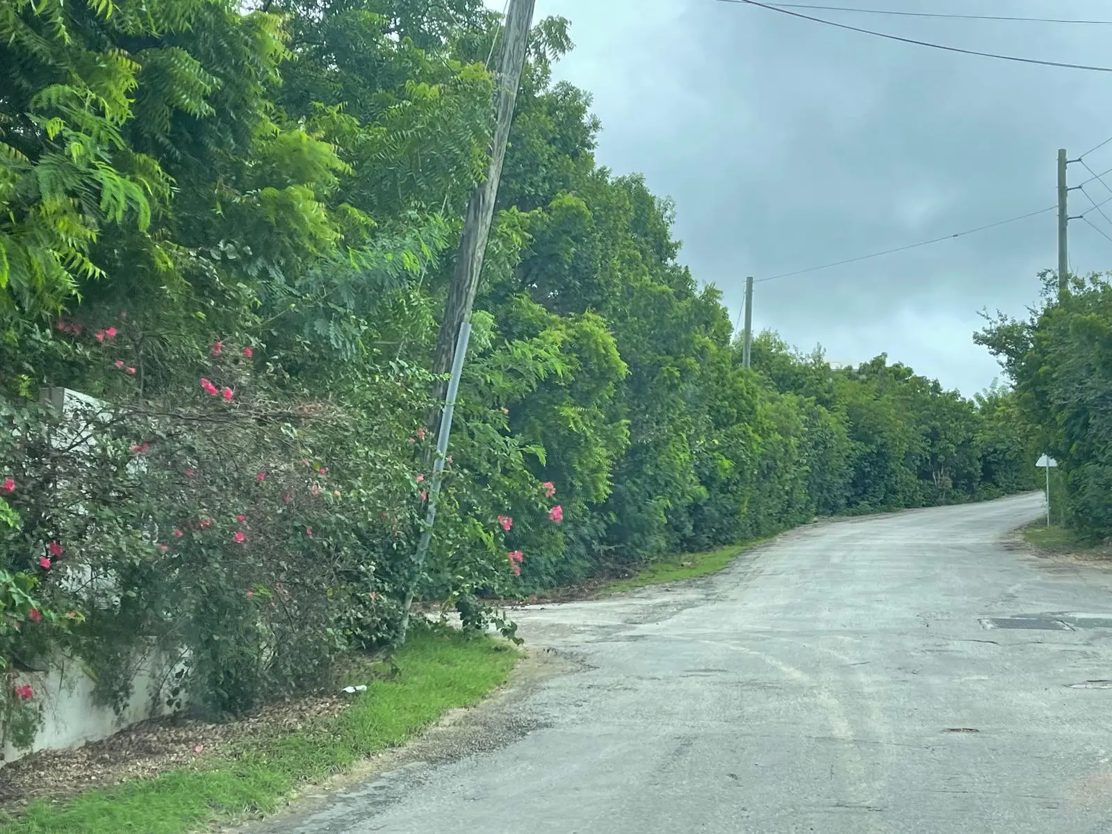 The land is trapezoidal in shape, gently sloping from north to south, measuring approximately 110 feet by 360 feet, and is covered with tree grass and shrubs. It is bounded by the main public road to the south and a right-of way to the west near the Malliouhana Hotel.